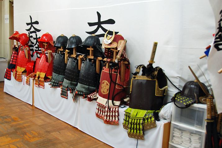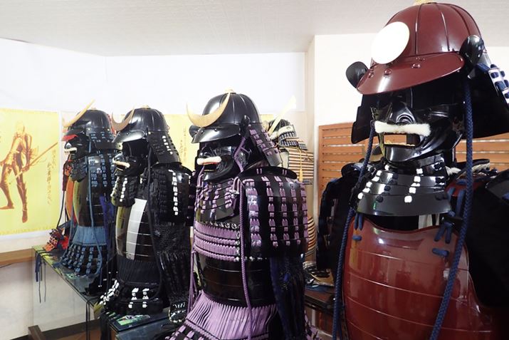 チープなものを想像していたら、本格的な甲冑がズラリ。甲冑の数は7体なので、混雑時には少し待たなくてはいけないことも