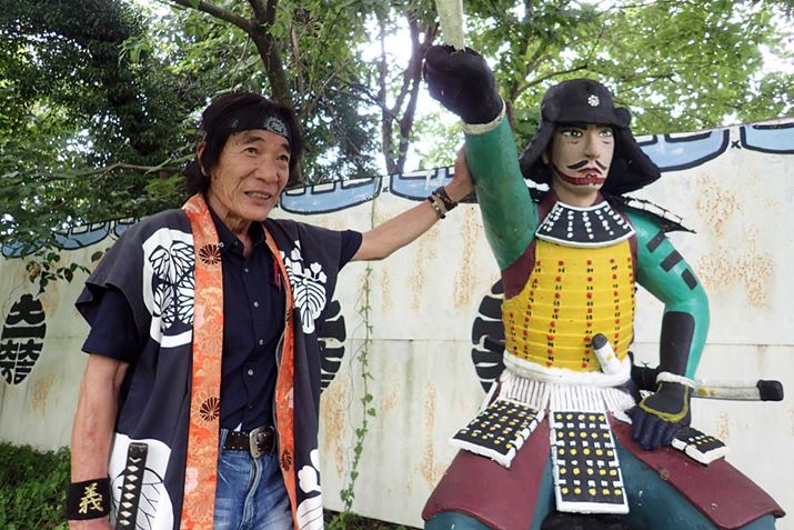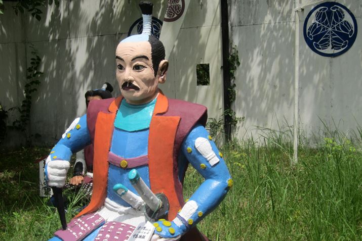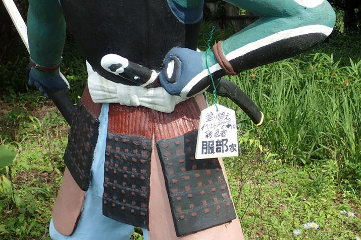 コンクリート像に武将名とは違うネームプレートがぶら下がっているのだが、これはペンキ塗りイベント(不定期開催)で塗った人の名前なのだという。今度、参加してみたい!