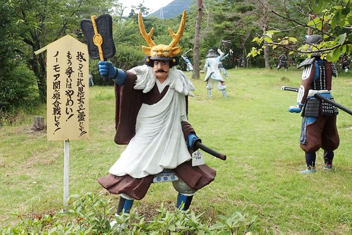 「もう争いはやめい! ノーモア関ヶ原合戦じゃ!」と叫ぶ武田信玄の像も有名。天下分け目の戦いが起きた関ケ原で平和の大事さを伝えるため、あの世からのメッセンジャー・武田信玄に代弁させているという