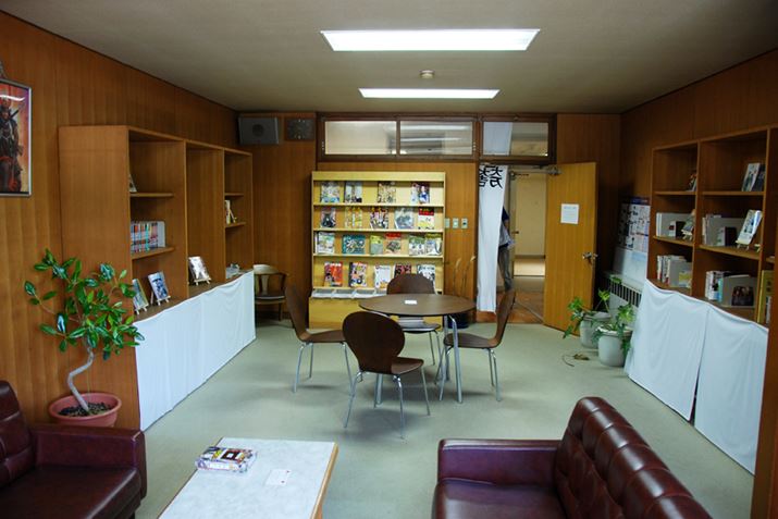 校長室は戦国図書館になっていた。関ヶ原合戦関連の書籍がたくさんあり、武将塗り絵など子ども向けの遊びもある