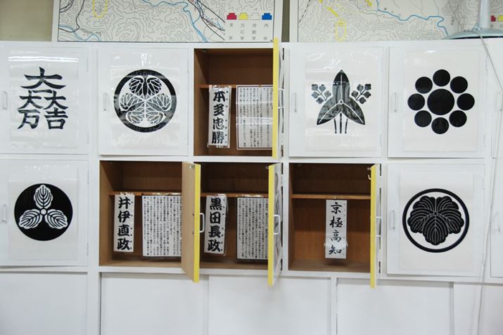 荷物を入れるロッカーは、家紋当てクイズの場に変身。扉に貼られた家紋がどこのものかを考え、開けると答えが出てくる