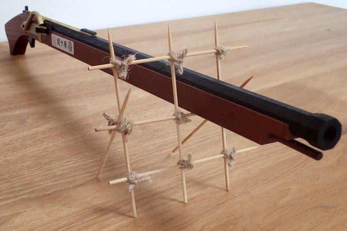 2つ目の玩具は、火縄銃。以前、浜松城を訪れた際に購入したゴム鉄砲と同じものだが、関ケ原にちなんでロングサイズの火縄銃となっている。