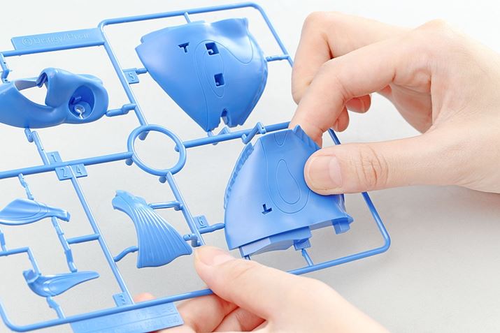 指でパーツを取りはずせる「タッチゲート」仕様。ニッパーを使わなくても、指でプチプチとパーツを取りはずすことができます。パーツはスナップキットになっているので接着剤を使わずに組み立てられます