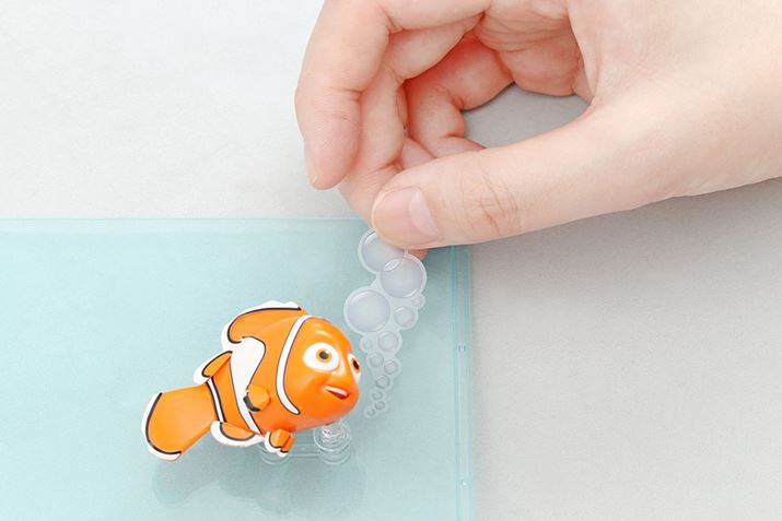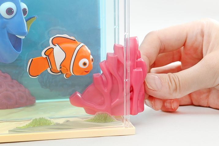ドリーとニモは自由に入れ替えて飾ることができます。海藻や水泡、小魚などの透明シールで自分だけのシーンを再現するのもよいですね