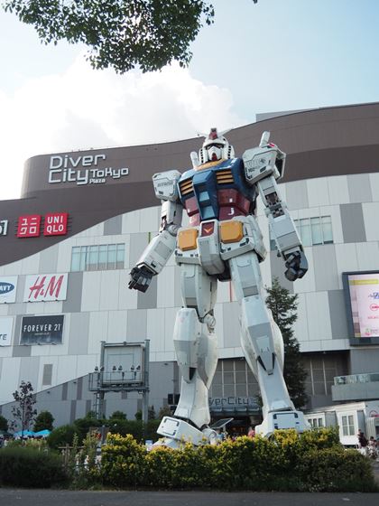 VR ZONE Project i Canのあるお台場・お台場のダイバーシティ東京プラザの前に立つ実物大のガンダム。これをモチーフに「ガンダムVR ダイバ強襲」は作られました