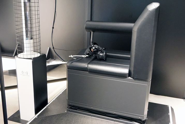 専用体感マシン。ステージやイス型筺体はコンテンツにあわせて振動する仕組みが入っています