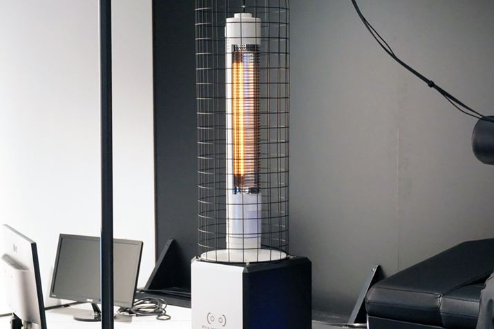 専用体感マシンの脇に用意されている赤外線ヒーターは、ザクのヒートホークの攻撃をガンダムのビームサーベルで受けたときの熱を表現するのに使用しています
