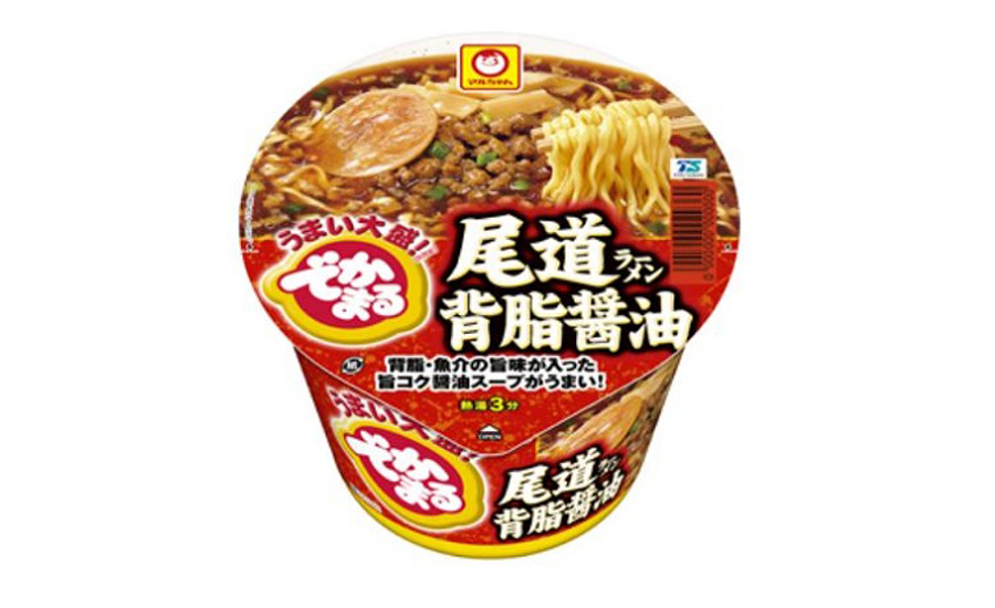 カープ! カープ! 広島カープ! 25年ぶりのセ・リーグ優勝で盛り上がる広島県ですが、ご当地ラーメンと言えば、尾道市を中心とした広島県備後地方の「尾道ラーメン」が有名。瀬戸内海の小魚によるいりこだしを加えた鶏がらスープが特徴で、醤油味ベースのシンプルな味を楽しめます。このラーメンをカップ麺にアレンジしたのが「マルちゃん でかまる 尾道ラーメン 背脂醤油」。尾道ラーメンの特徴の1つである背脂を加えて、コクのある一杯に仕上げました。しかも、「でかまる」だから、ボリュームたっぷりの大盛カップ。活気に溢れる広島のご当地ラーメンを、トコトン味わってください!