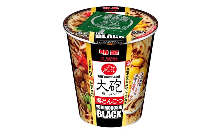 10月2日は「とんこつラーメンの日」。この日ばかりは、朝昼晩と1日3食とんこつラーメンを食べても、誰も文句を言いません(多分)。とんこつラーメン発祥の地である久留米に本店を構える「大砲ラーメン」は、昭和28年創業の老舗ラーメン店。人気メニューである「黒とんこつ」をカップ麺で再現したのが「明星 大砲ラーメン 黒とんこつ」です。香ばしさとピリ辛の味わいが特徴の特製マー油を豚骨スープとあわせて、濃厚でパンチのある味に仕上げました。ピリッとした辛みとガーリックの香ばしい風味、紅ショウガのアクセントは、一度食べたらクセになりそう。