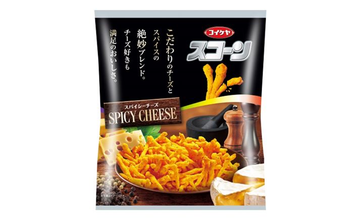 「チーズ」とひと言で言っても、さまざまな種類があり、それぞれ違う味わいを楽しめます。湖池屋が発売する「スコーン スパイシーチーズ」に使われているのは、「チェダー」「カマンベール」「ゴルゴンゾーラ」「モッツァレラ」「パルメザン」「エメンタール」「ゴーダ」と、何と7種類! さらに、「ブラックペッパー」「ホワイトペッパー」「タイム」「シナモン」といった7種類のスパイスも使用しています。濃厚なチーズの味とスパイスのアクセントが、ベストマッチする贅沢なスナック。ぜひ、ワインと一緒にどうぞ。