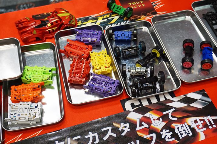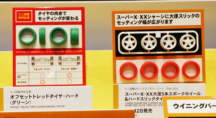 本家のタミヤもチェックしておこう。「ミニ四駆」は歴史が長いだけに、シャーシやホイール、タイヤなども細かな部分まで進化したパーツが数多く揃っている。久しぶりに目にしたミニ四駆は、筆者が子どもの頃に馴れ親しんだイメージも残っているが、「こんなことまでやっているんだ」と感心する変化を遂げていた。幾度も開催されたレースの結果から評価の高かったパーツなどを市販品にフィードバックしているのも魅力。