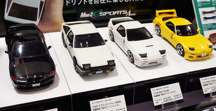 ドリフトしやすいシャーシやタイヤを装備したシャフトドライブ式の4WDモデルには、「日産 スカイライン GT-R V-SPEC U」「トヨタ スプリンタートレノ AE86」「マツダ RX-7 FC3S」がラインアップされていた。価格は24,000円〜
