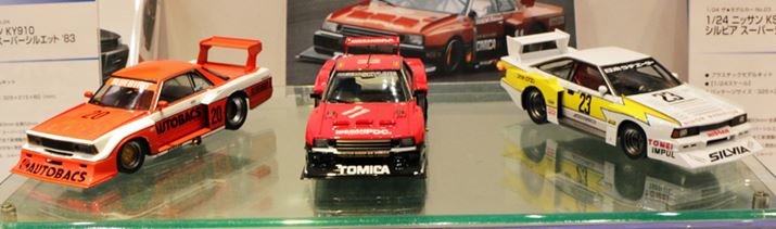 旧車のレーシングマシンなどが得意なアオシマのブースでは、日産の代表的な3車種のスーパーシルエットを見ることができた。スカイラインはまだしも、ブルーバード、シルビアがプラモデルになるなんて! 「1/24 ニッサン KY910 ブルーバード シルエット '83」と「1/24 ニッサンKS110 シルビア スーパーシルエット '82」の市場想定価格は2,592円で、2016年11月発売予定
