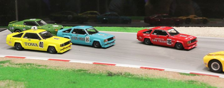 往年のレースシーンを再現した展示では、3台並んだB310型の日産「サニー」TSレース仕様に感涙