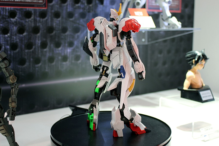 足りないパーツは敵から奪って装備していくという今までにはなかったコンセプトの「鉄血」シリーズ。会場では、半身がフレームの露出した状態で展示されていました