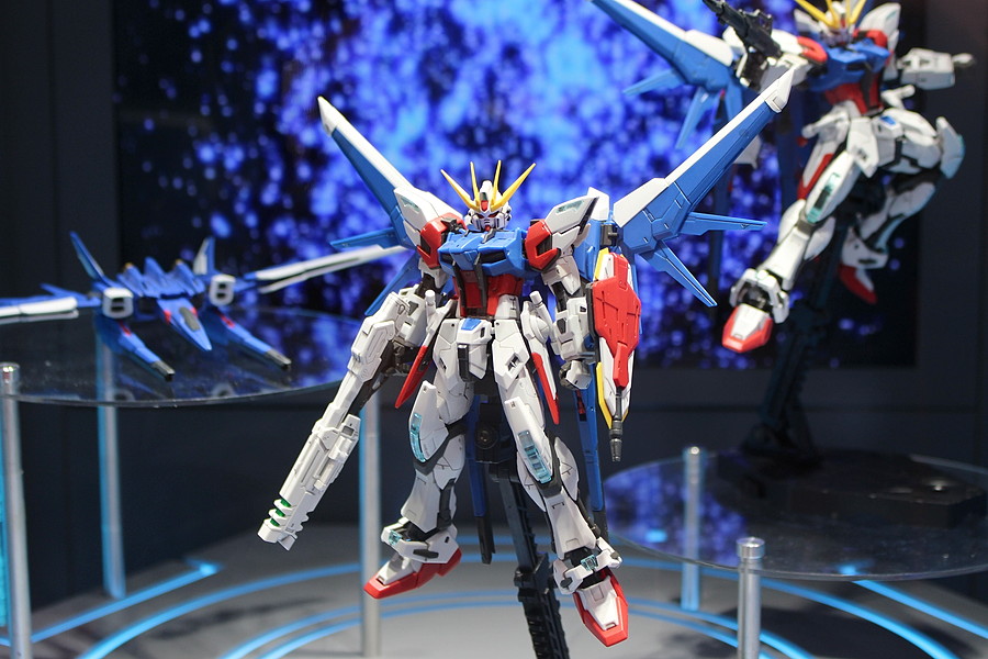 テレビアニメや漫画で連載中の「ガンダムビルドファイターズ」シリーズからは、「ビルドストライクガンダム フルパッケージ」のRGが登場。コミック版の「ビルドファイターズA-R」から、「HGBF ルナゲイザーガンダム」が展示されていました。