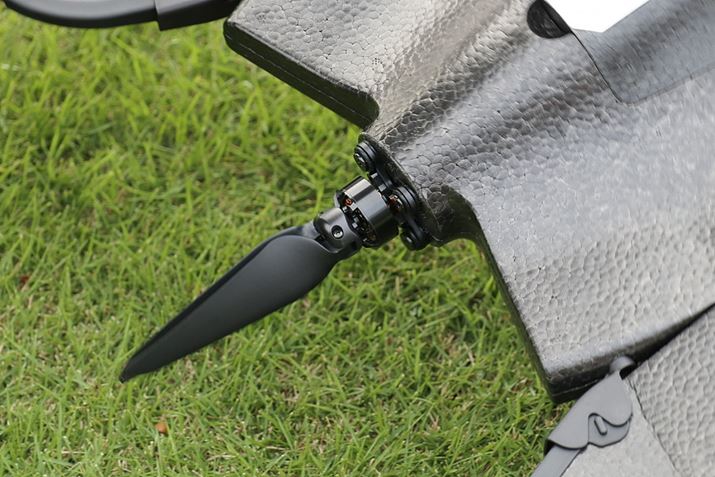 主な推進力となるのは、本体後方に取り付けられた2ブレードプロペラを装着したブラシレスモーター。このプロペラと補助翼により、Parrot Discoは最大時速80kmでフライトすることが可能。さらに風速11.11m/sの強風にも耐えることができるとのことです