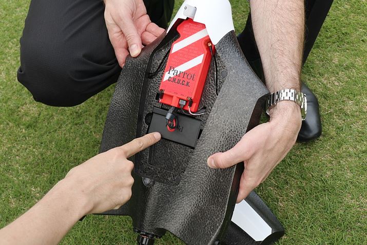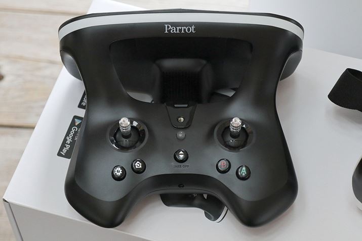 こちらは専用のFPVヘッドディスプレイ「Parrot Cockpitglasses」。iOSもしくはAndroidのスマートフォンを本体にセットすると、フロントカメラからの映像をライブストリーミングで楽しむことが可能です。ただし、Parrot Cockpitgrassesを使用するときはコパイロット(副操縦士)の同伴が必要です