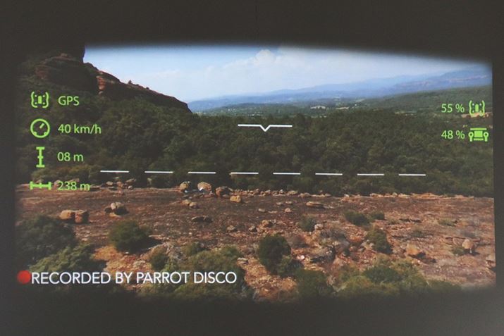 まずは、実際にParrot Discoが飛ぶ様子をご覧ください。“フリスビーを投げるように”機体を投げると、Parrot Discoは自動的に離陸。その後すぐに自動で50mの高度まで飛び、旋回を続けながら命令を待ちます。