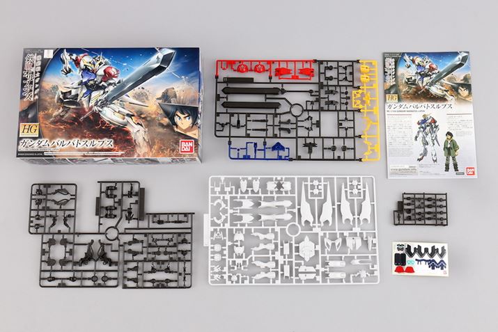 バルバトスルプスのパッケージと箱の中身です。ランナー枚数は3枚。それにポリキャップ、ホイールシール、組立説明書が付属しています。パーツ数も手ごろなので、ガンプラ初心者にも組み立てやすいと思います