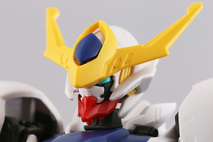 頭部パーツの色数が豊富なところも注目ポイント。あごの赤、ほおのグレー、サイドの黄色など、目の部分のホイールシール以外はすべて色分けされています。これだけの色の組み合わせが、すべてパーツ分割で再現されているのはすごいですね