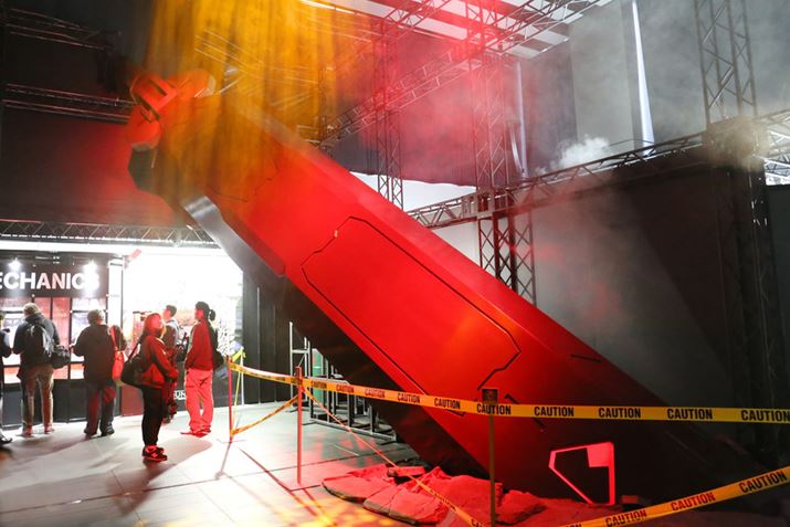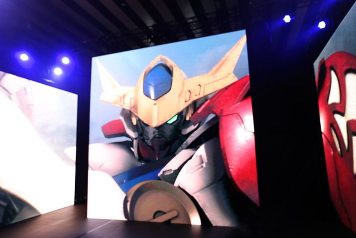 会場に入って最初に現れる巨大なLEDモニター。『機動戦士ガンダム 鉄血のオルフェンズ』に登場する「ガンダムバルバトスルプス」の迫力ある映像が上映されていました