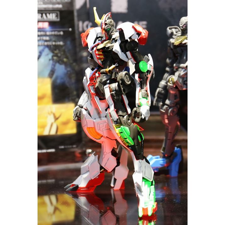 「フルメカニクス」シリーズのスペシャル展示として、「1/100 フルメカニクス ガンダムバルバトスルプス」のカットモデルが展示されていました。「ガンダム・フレーム」が細部まで精巧に再現されていることがわかります