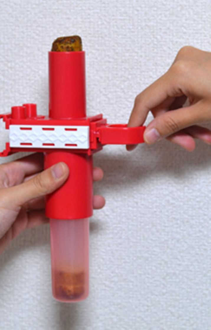 スロットにうまい棒を投入して、プルアーを引くだけ! 簡単にスライスできます。ふむふむ
