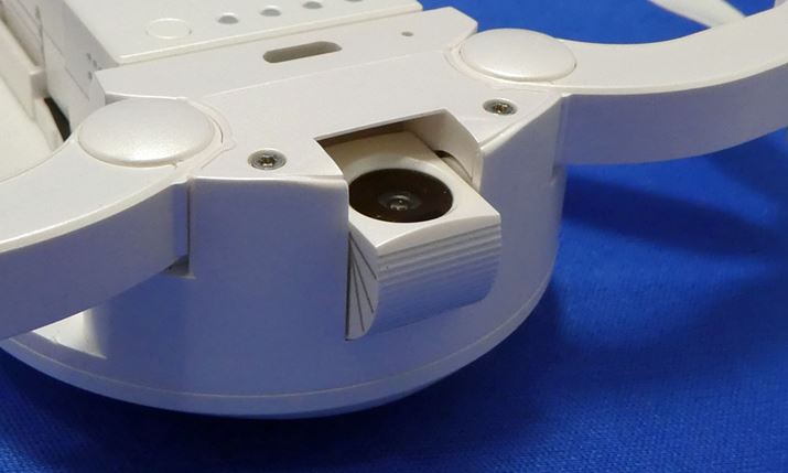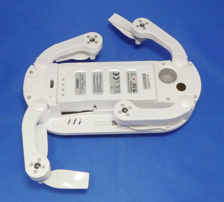 本体を底側から見るとわかりやすいが、4つのプロペラ部分は上記の写真のように収納される。このギミックのおかげで手のひらに収まるコンパクトサイズを実現しているというわけだ。ちなみに、プロペラは各部に2枚付いており、それぞれの向きを自由に動かせる構造になっている