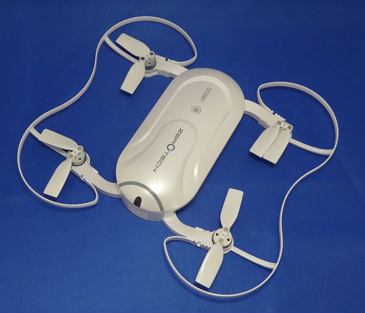 そんな中、今年になって新たなドローンの進化として、プロペラを折り畳めてコンパクトになるタイプの製品が登場しはじめた。クアッドコプターと呼ばれる一般的なドローンの機体には4つのプロペラが付いている。このプロペラ部分が広がっているため、どうしても構造的に大きくなってしまう。飛ばす際にはその大きさはまったく問題ないのだが、運ぶときにかさばってしまうし、専用のケースに入れたりする必要もあり、荷物1個分にはなる。どうしても気軽に持ち運ぶことはできず、「今日はドローンを飛ばすぞ!」と意気込んだ時にしか持ち歩かなくなる。「もっと気軽にドローンを持ち歩いて、いろんなところで空撮を楽しめると良いなぁ〜」と思っていたら、手のひらサイズで、しかもプロペラが折りたためて携帯にも便利なドローン「DOBBY」が中国のZEROTECH社から10月に発売された。日本でも、動画ショッピングサイト「DISCOVER」や大手家電量販店、ECサイト等で購入可能となっている。本体やバッテリー、専用充電器を1セットにした「スタンダードモデル」と、スタンダードモデルに予備バッテリーやバッグなどを加えた「デラックスモデル」の2モデルがラインアップされており、スタンダードモデルは5万円前後、デラックスモデルは5万円台後半で販売されている。
