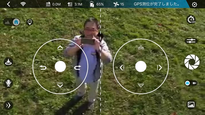 DOBBYが撮影している映像がスマホに表示され、スマホ上のコントローラーやボタンで操縦や撮影、モードの切り替えを行うことができる。なお、スマホに表示されている映像は多少粗いが、撮影した写真や動画はDOBBY本体のSSDに高解像度で保存される
