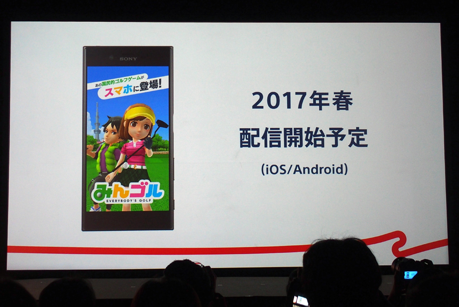 トップバッターで紹介されたのは、国民的ゴルフゲーム「みんなのGOLF」のIPを使ったゴルフゲームアプリ「みんゴル」だ。今回、スマホ向けアプリとして新たに開発するにあたり、誰でも簡単に軽快ショットを打てること、いつでもどこでも楽しめることの2つに重きをおいて開発したということだ。事実、「みんゴル」では@タップ、Aひっぱる、Bはなすの3ステップで軽快ショットが打てるように操作体系を見直している。このほかにも、世界中のさまざまなコースを遊べたり、キャラクターのカスタマイズ機能を搭載することなども明らかになった。なお、開発はドリコムが担当し、ゲーム監修は「みんなのGOLF」チームが担当する。2017年春にiOS/Android向けに配信予定だ。