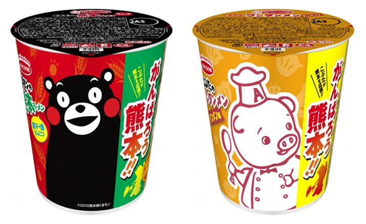 2016年4月14日および16日に発生した熊本地震の復興を支援するため、「がんばろう熊本! くまモンの熊本ラーメン/こぶたのワンタンメン」がエースコックより発売されます。パッケージには、熊本県の“営業部長”くまモンと、エースコックのこぶたをデザイン。「くまモンの熊本ラーメン」は、黒マー油が浮かんだ食欲をそそる香ばしいスープで、「こぶたのワンタンメン」は、かつおだしに松茸の風味がふわりと香るおなじみのスープです。いずれも、熊本県産小麦を使った麺と、「こぶた」のなるとを採用。売上の一部は熊本に寄付されます。美味しいラーメンを食べて、熊本を支援しましょう!