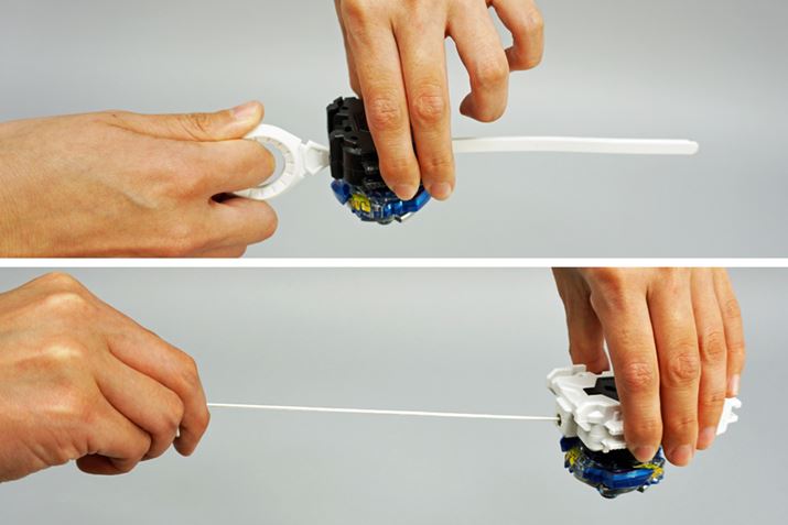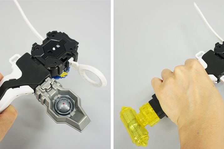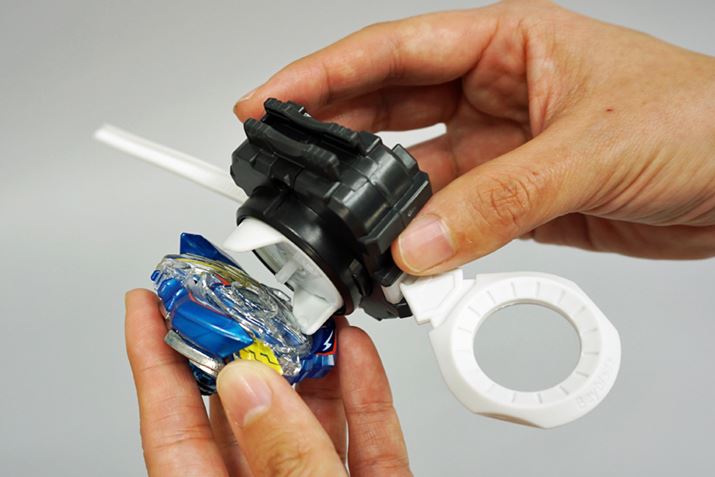 ランチャーにベイを装備し、ワインダーを引いてシュート!