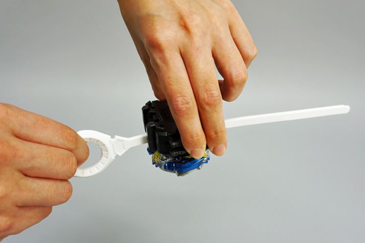 回転をつけてベイを投入するために、発射装置「ランチャー」を使います