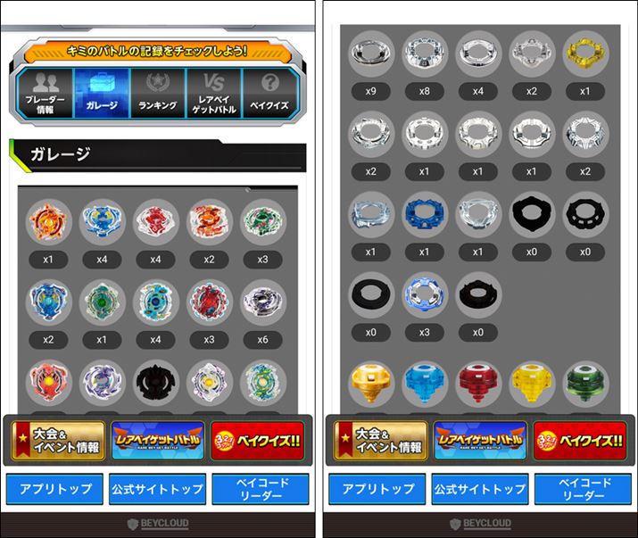 ガレージは、まさに自分のコレクションルーム。ベイブレードバーストができない場所では、ラインアップを友達と見せ合って楽しんでいる子ども達も多いそうです