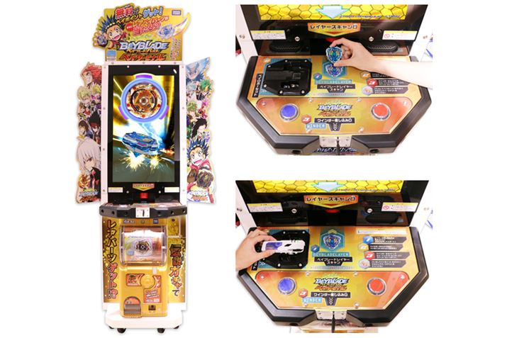 子ども達をわくわくさせるしかけは、リアル店舗にもあり! おもちゃ店や量販店など一部の加盟店に設置されている「ベイターミナル」というゲーム筐体に自分が持っているベイをかざすと、レイヤー1個につき1日1回無料でゲームを楽しめるのです。ゲームは、ボタン操作で行うベイバトル。バトル結果によってベイポイントがゲットでき、勝利するとガチャからレアなパーツが手に入る可能性も。