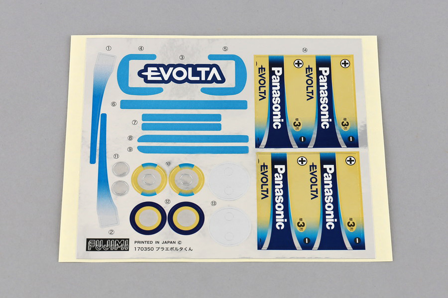 今回ご紹介する注目キットは、2016年11月にフジミ模型から発売された「Ptimo3プラエボルタくん」(以下、プラエボルタくん)です。ロボットクリエイターの高橋智隆氏が開発を手がけた実証ロボット「エボルタ(EVOLTA)」。パナソニック乾電池の耐久実験でグランドキャニオンを登ったあのCMでご存じの方も多いのではないでしょうか? プラエボルタくんは、接着剤なしで組み立てることができ、シールを貼るだけで色分けを再現することができます。サイズは1/1スケールで、78.8(幅)×159(高さ)×70.3(奥行)mmです。それではさっそく組み立ててみましょう。