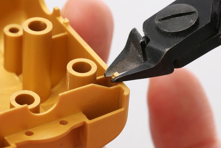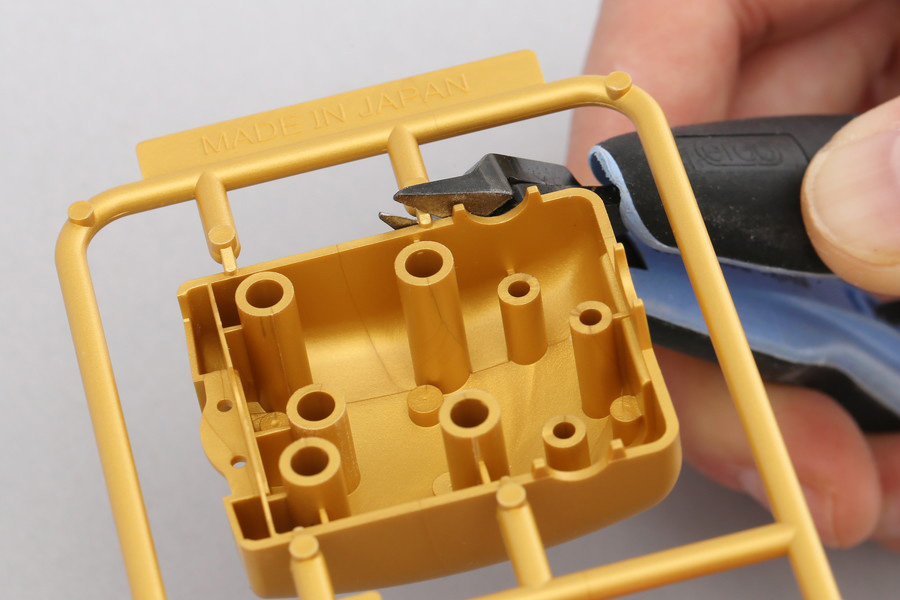 ニッパーを使って、2回に分けてカットします。1回目はゲートの横をカットします