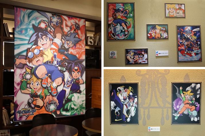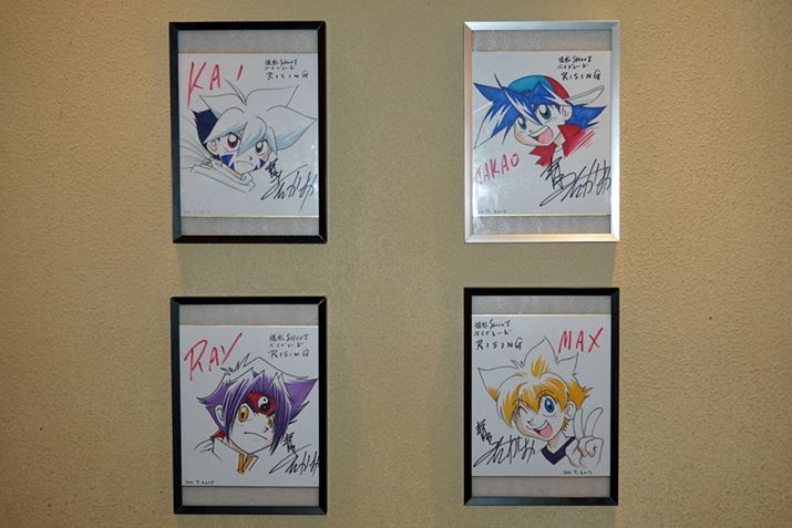 漫画「爆転シュート ベイブレード」の作者・青木たかお先生のイラスト色紙も飾られていました。なお、公式サイトで、ベイブレードバーのために描き下ろされた新作コラボ漫画を見ることができます