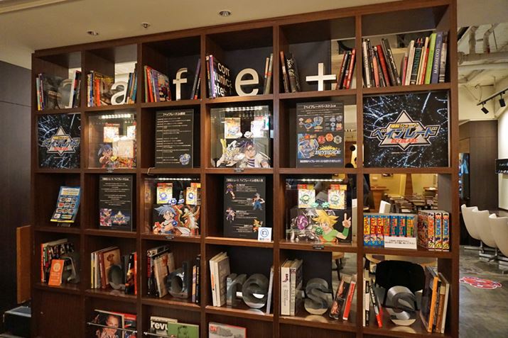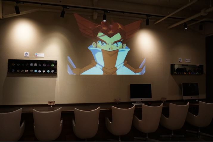 このように長きにわたり親しまれているベイブレードですが、大人になるとなかなか触れる機会がありません。初代アニメシリーズを小学生の時に見ていた子どもたちも、もう20代前半〜中盤になっている頃です。そんな年代の人に向けて提案されたのが、「爆転シュート ベイブレードバー」。店内には当時のベイブレードが100個以上展示され、テレビアニメ「爆転シュート ベイブレード」の上映も行われています。