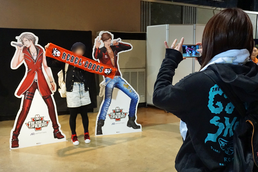 会場にはパネルが並んでおり、記念撮影するファンが続々