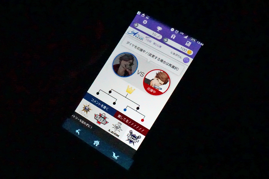 専用アプリ「ふれフレ」から応援したいパフォーマーを選び、スマートフォンを振ります。しかし、片方でサイリウム、もういっぽうでスマートフォンを扱うのはけっこう難しいもの。初回ではうまくできませんでした。上位に食い込むには練習が必須かも!?