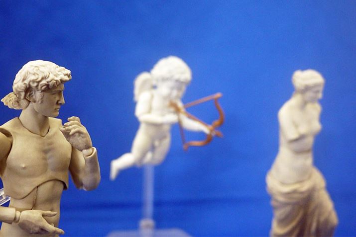 こんなふうにシリーズで並べていくと、やはりネタフィギュア化してしまうのですが、これだけ揃ってくると、ちょっとグッとくるものがありますね。芸術作品を楽しみながら、ネタを考えられるってなかなかできない経験ですよ! 特に今回の天使像は誰もが知っているイメージを可動フィギュアにしたということで、どんなポーズを取らせてもなじみやすいですし、お店のショーケースのアイテムとして使ったり、SNSなどの写真の飾り付けに使えたりと汎用性がとても高そうです。