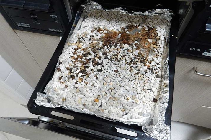 検証するのは、「グリル敷石」というもの。グリルの受け皿に水を入れる代わりに、石を敷くんですね