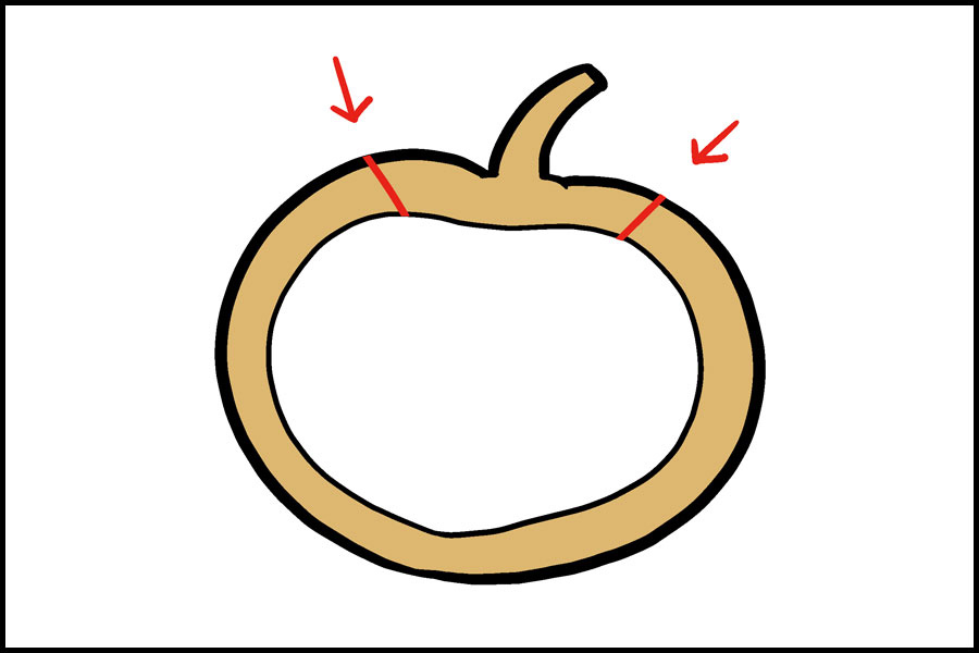 そして、ロウソクを入れる空間を作るため、中身をくり抜きます。まずはナイフや包丁でてっぺんに丸く切り込みを入れて…