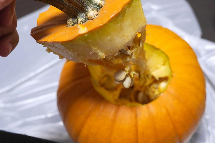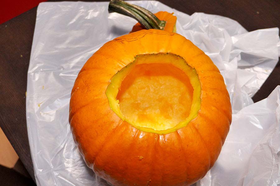 あとでまたかぶせるので、フタが落っこちないように、角度をつけてくり抜くといいようです