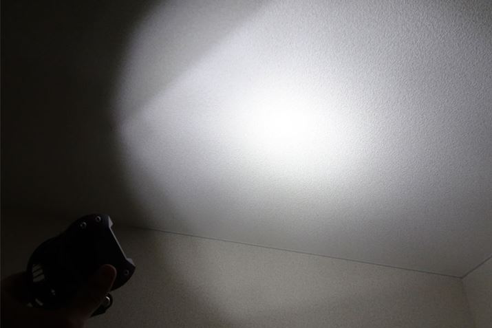 肉眼ではまともに見られないほどの照度です。LEDなのでこれだけ明るくても熱の発生が最小限なのもいいですね