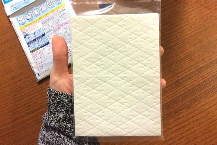 このシートは、裏と表でザラザラの面とそうでない面があるのですが、使い方はザラザラのほうに適量の水をつけてこするだけ!