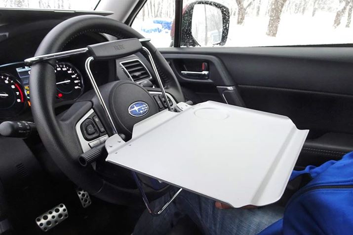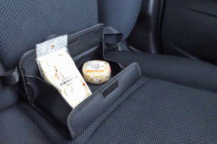 クルマ移動での休憩中、車内に「あったらいいな」と思うのが簡易テーブル。ミニバンや背の高い軽自動車などのレジャー向きのクルマでは、前席の背もたれに後席用のトレイが備わる場合がありますが、私の好きなセダンでもそういう機能が欲しいと常々思っていました。